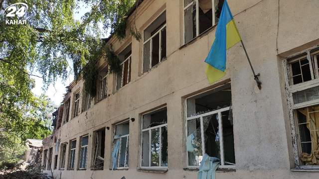 Разрушения, нанесенные ракетным ударом россиян по лицею в Люботине / Фото Анны Черненко, 24 канал