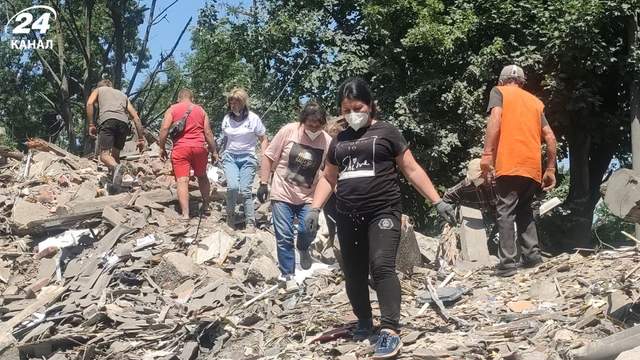 Неравнодушные горожане разбирают разрушенное здание / Фото Анны Черненко, 24 канал