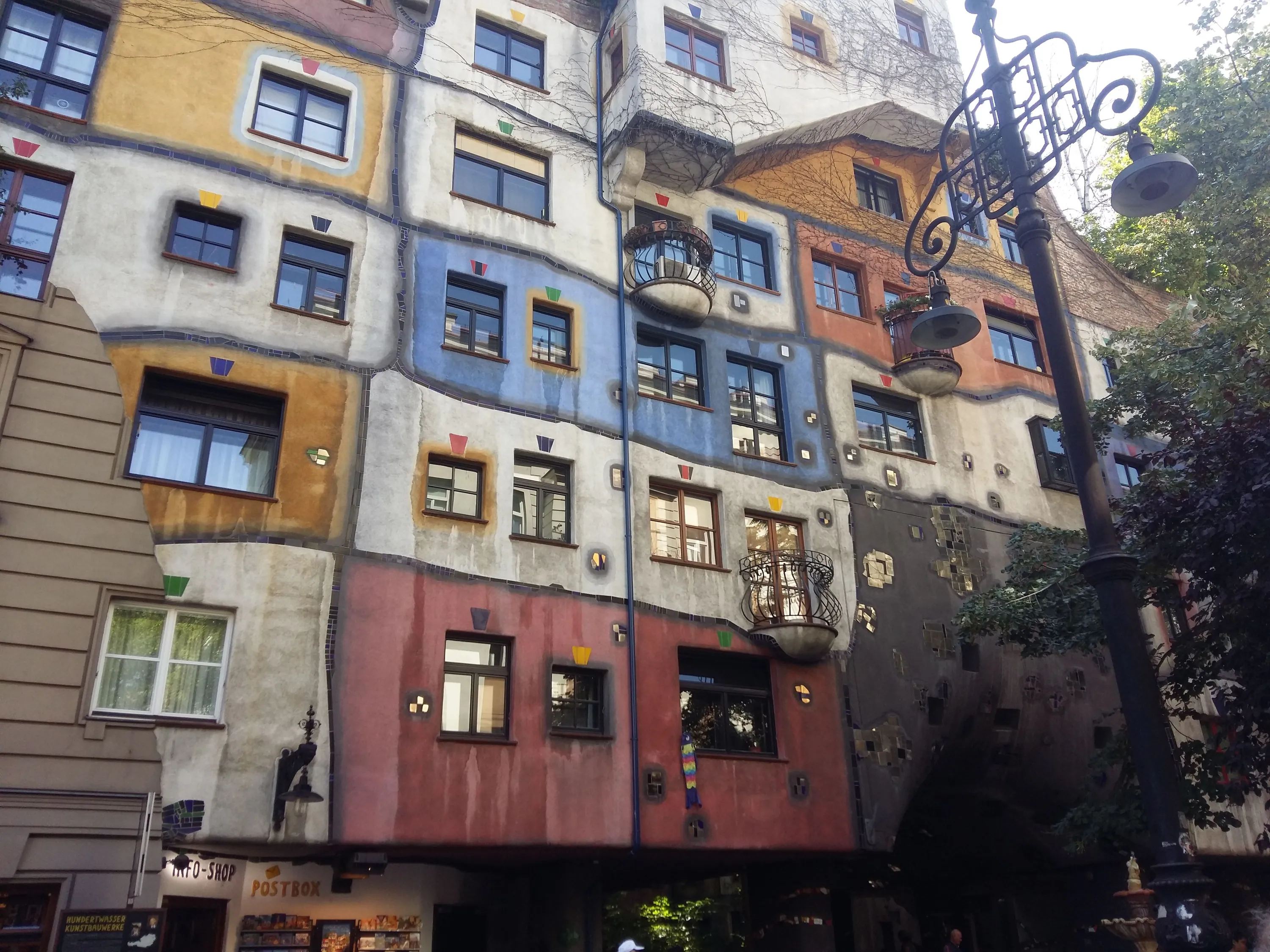 Яркое здание сверкает цветами, битой керамической плиткой и подмигивает многочисленными причудливыми окнами. К слову, именно окна были для Хундетвассера основой здания.