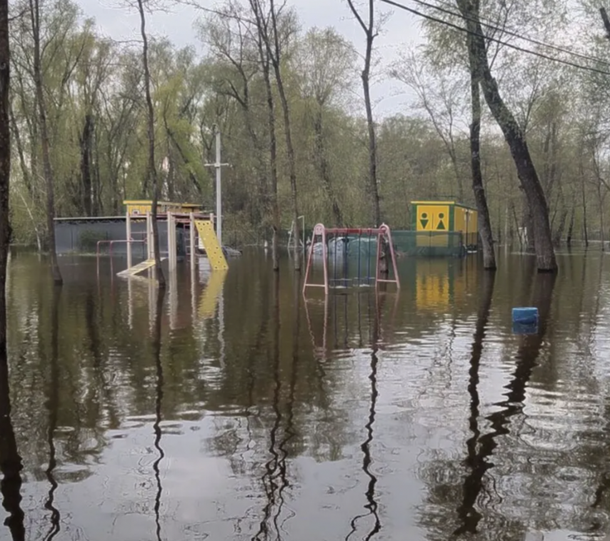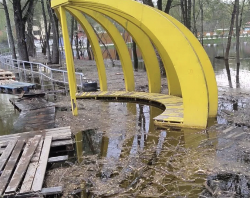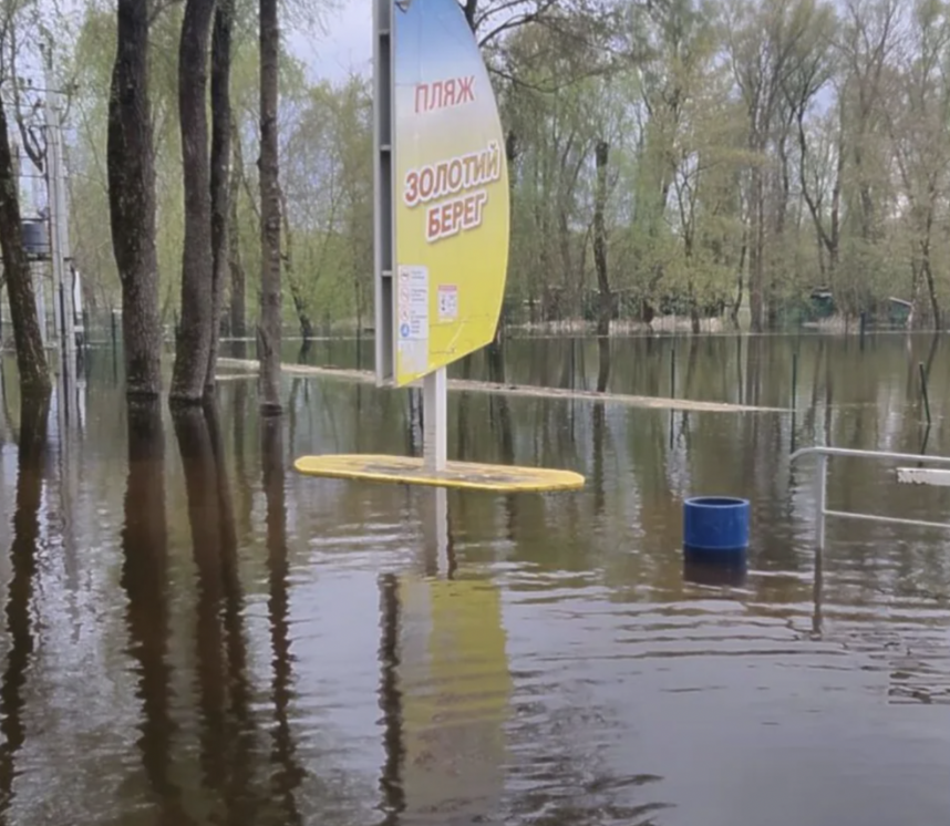 На обнародованных кадрах можно увидеть, что в Чернигове под воду ушли деревья, дорожки, пляж, детская площадка и даже парковочное место для авто.