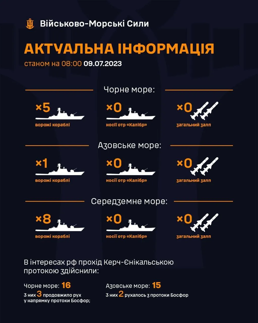 По состоянию на утро 9 июля отсутствуют ракетоносители "Калибров" / Инфографика ВМС ВСУ