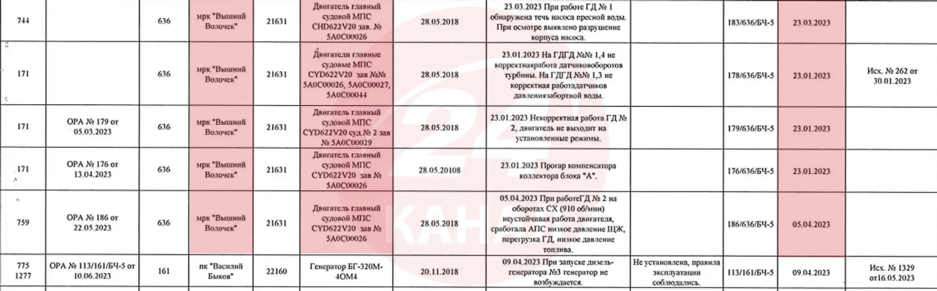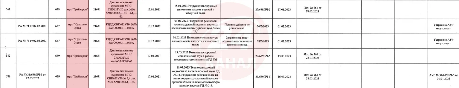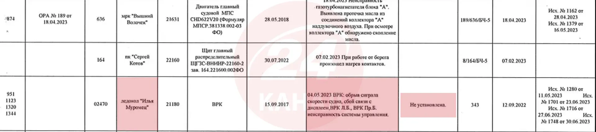 Отмечается, что из-за выходов из строя двигателей, некоторые суда вынуждены стоять на приколе больше времени, чем находиться в открытой воде. Об этом свидетельствуют официальные документы страны-агрессора.