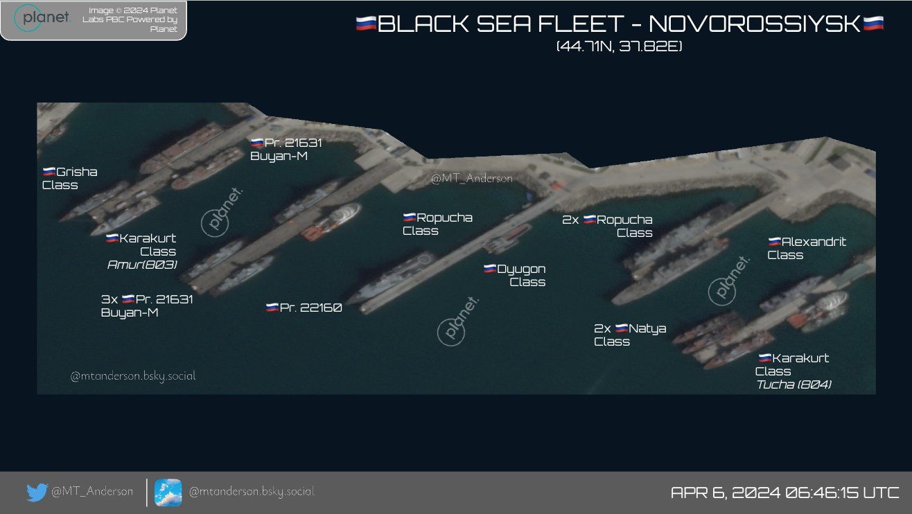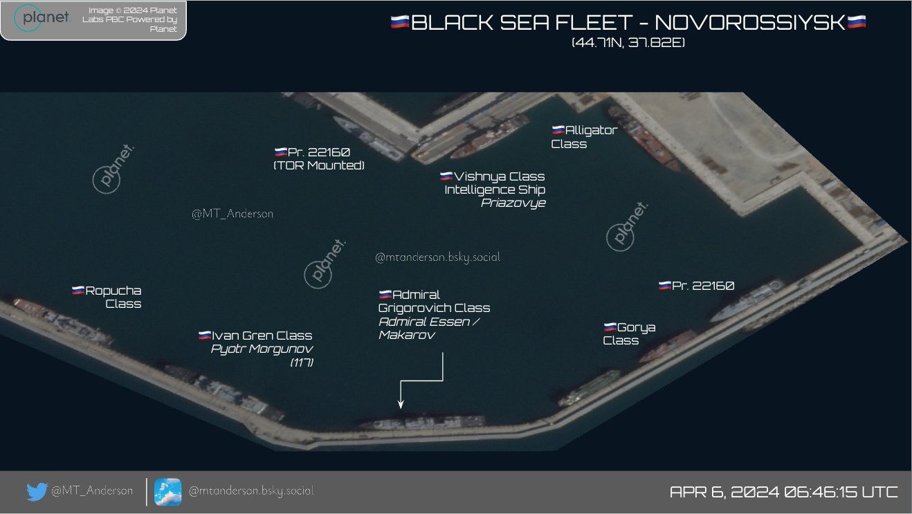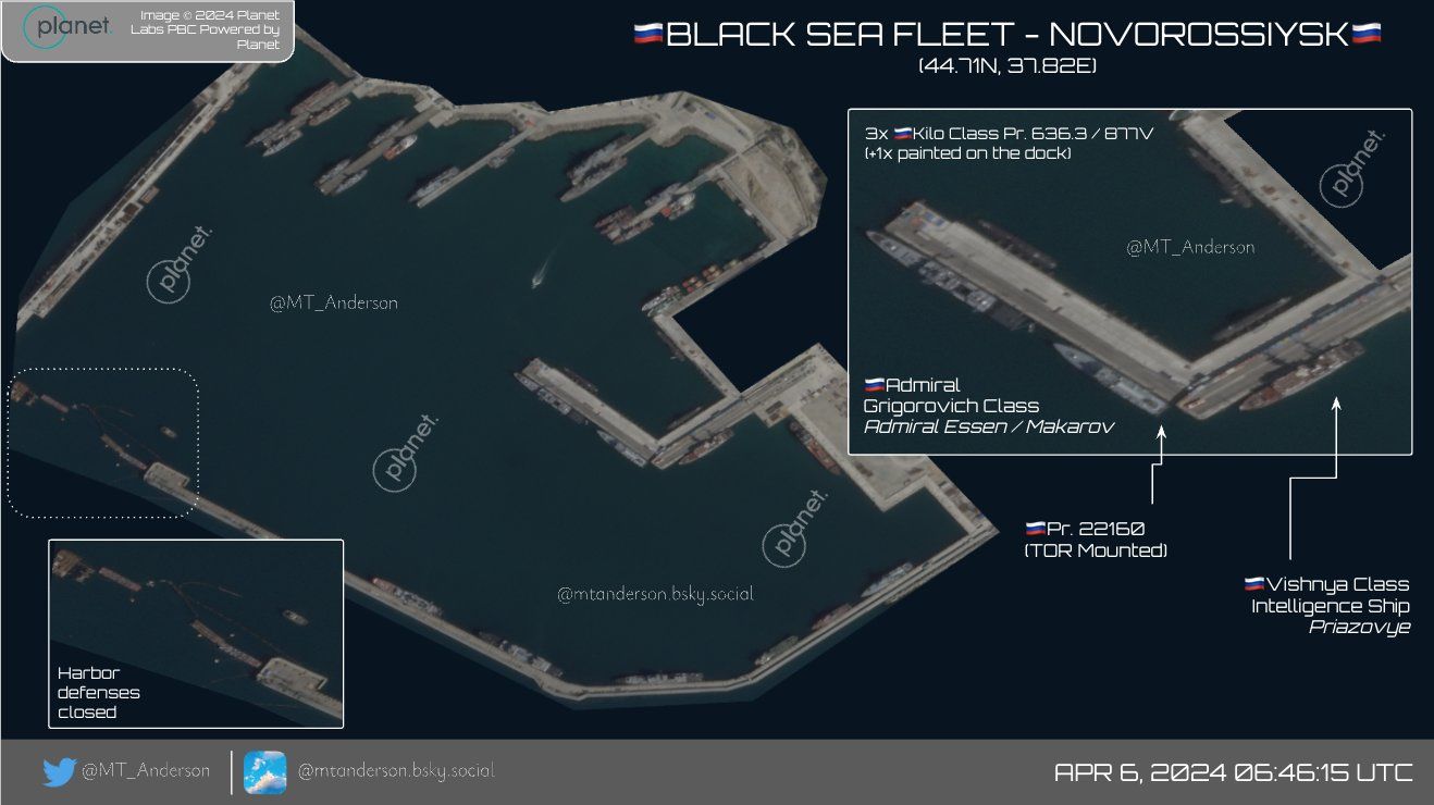 Так, во вторник, 9 апреля, OSINT-аналитик MT Andersonу во вторник 9 апреля OSINT-аналитик MT Andersonу в соцсети Х (ранее твитер) обнародовал эти спутниковые снимки.