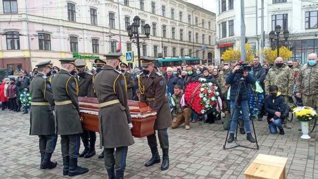 Проститься с военным пришли десятки буковинцев. В 12: 00 началось захоронение Героя на Аллее Славы Центрального кладбища в Черновцах.