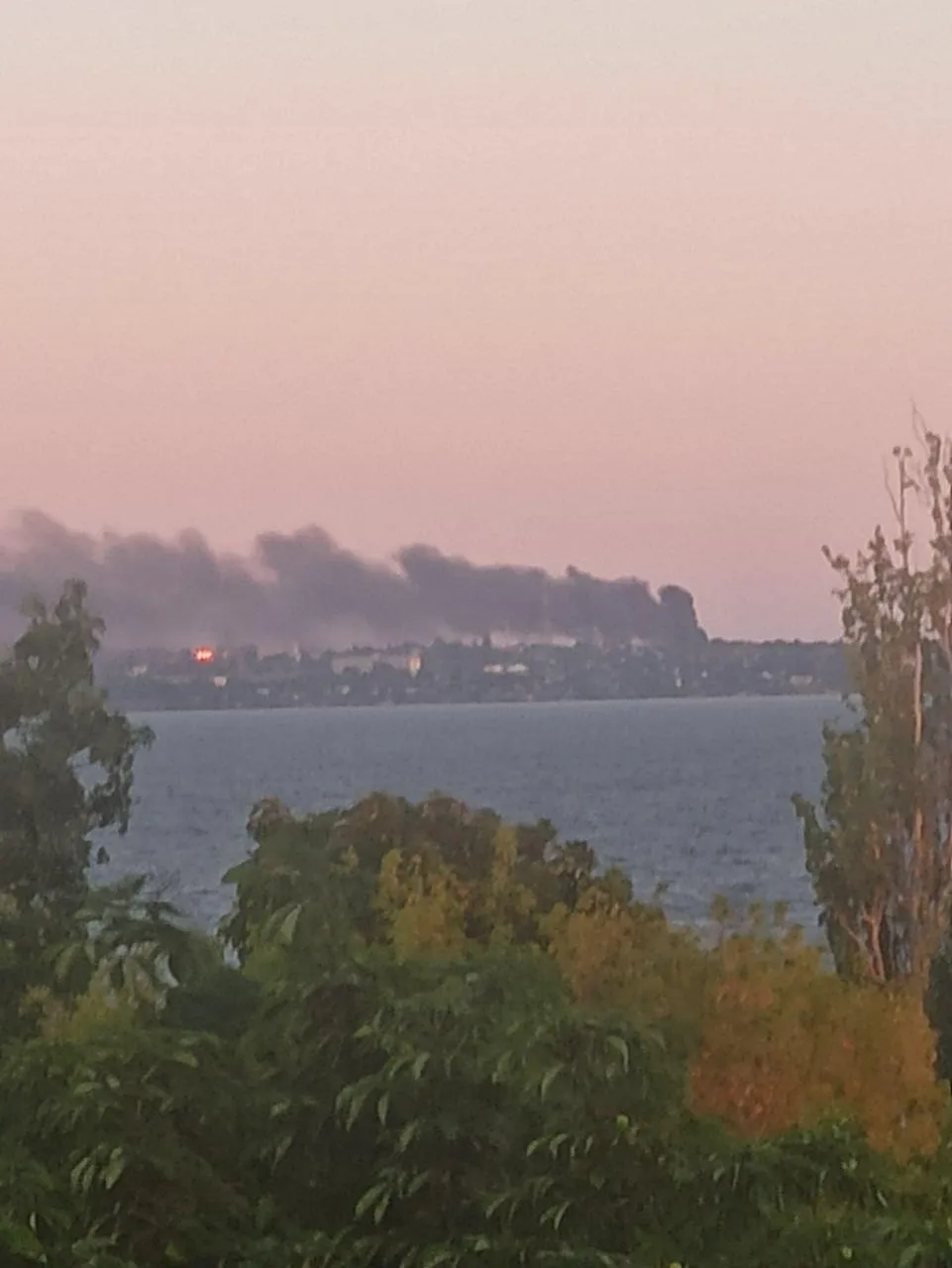 Дым на месте взорванного склада россиян в Каховке / Фото из соцсетей