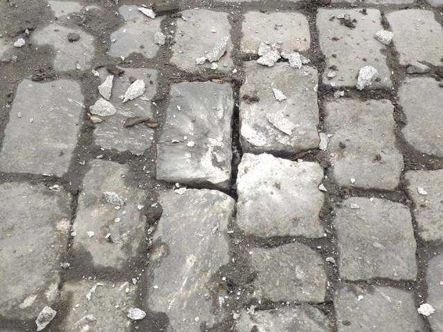 Один из снарядов попал в Майдан Свободы. После мощного взрыва все вокруг разлетелось на куски. Центральная площадь разрушена.