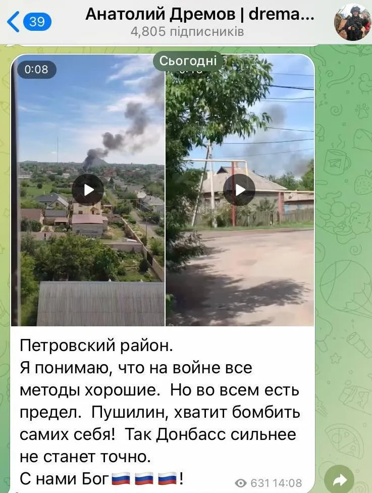 Об обстреле Донецка россиянами написал даже идейный российский преступник / Скриншот из сообщества оккупанта