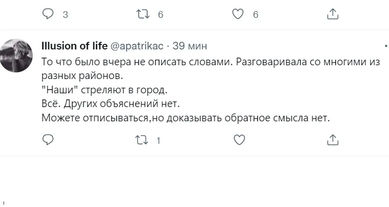 Фактически в басни о том, что "стреляют украинские военные", верят только жители глубокого тыла и сами россияне. Однако все, кто живет в городах, по которым нанесли удары, знают, какова правда.