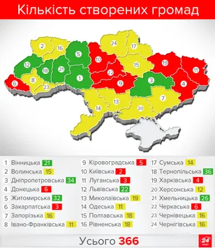 Фактически города областного значения исключены из процесса объединения из-за позиции Центральной избирательной комиссии. Там считают, что для образования ОТГ вокруг города областного значения перед этим должны быть изменены границы района, который окружает этот город (города областного значения не входят в состав районов – 24). Хотя, действительно, вокруг города есть границы сельсоветов, и городская территориальная община граничит с сельскими территориальными общинами,