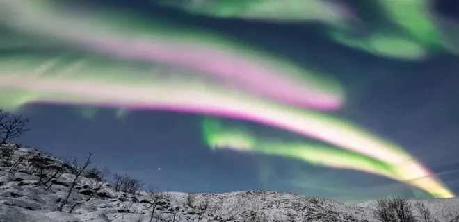 Розовое полярное сияние в Норвегии / Фото Маркус Варик