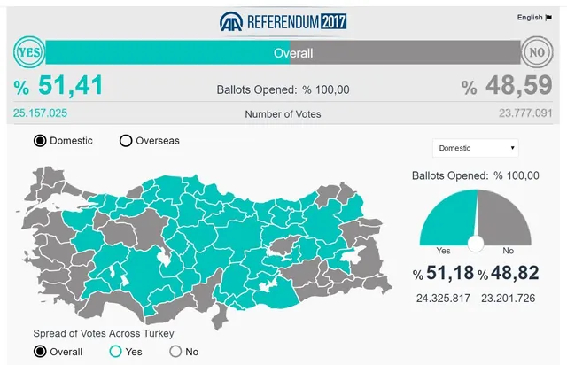 Напомним, в Турции сегодня происходит исторический референдум. Он может существенно расширить полномочия Эрдогана. В частности, предлагается отменить должность премьер-министра, увеличение числа депутатов парламента и внести изменения в судебную систему, а Эрдоган сможет оставаться у власти до 2029 года.