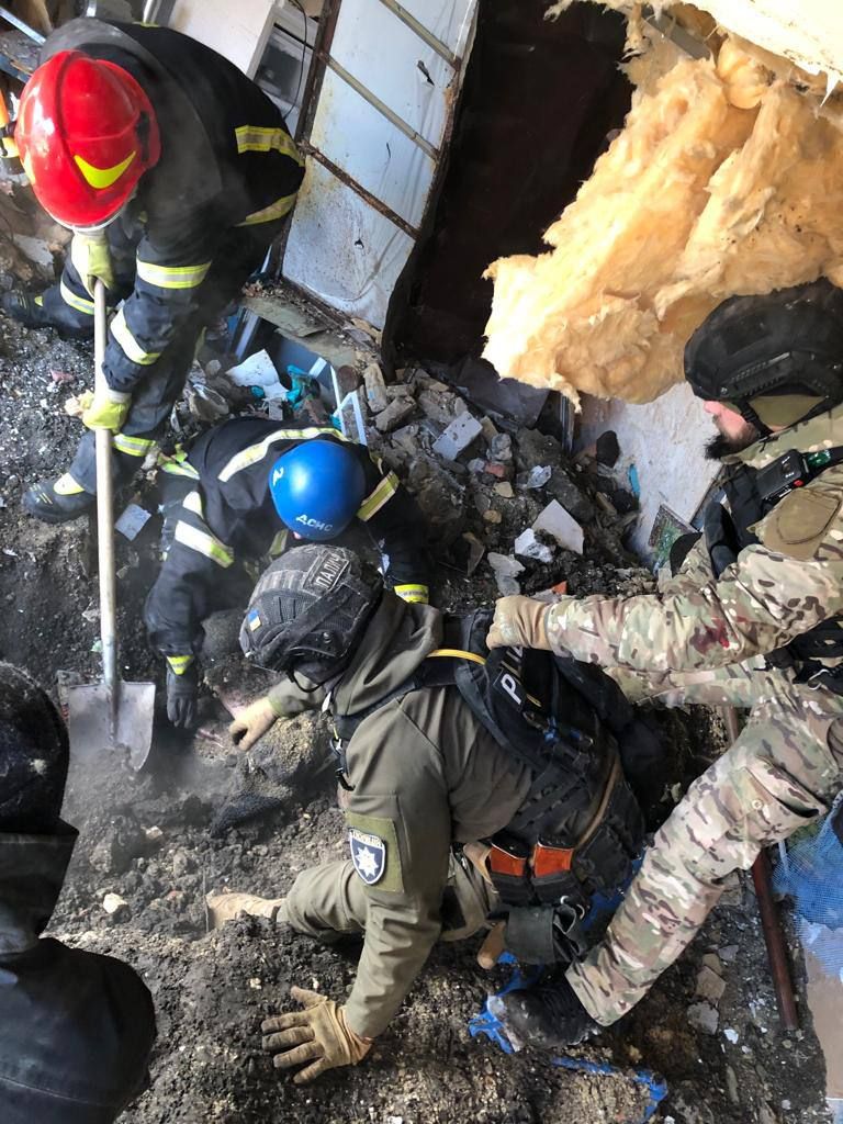 Глава областной военной администрации заявил, что по состоянию на 10:40 спасатели продолжают разбирать завалы.