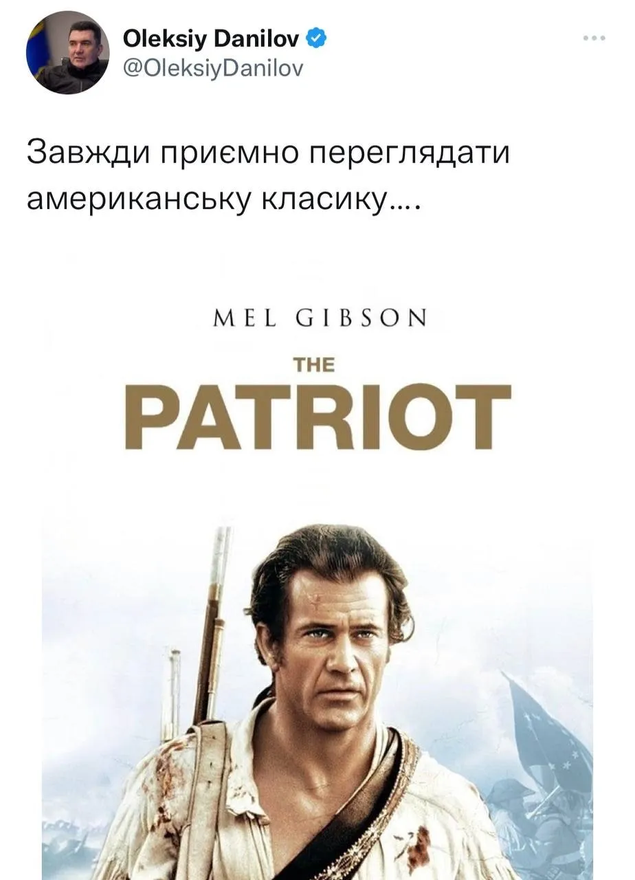 Данилов прокомментировал эту информацию. "Всегда приятно просматривать американскую классику", – написал Данилов.