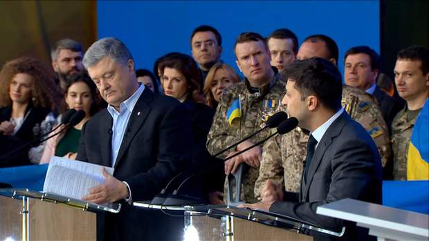 Порошенко и Зеленский стали на колени во время дебатов
