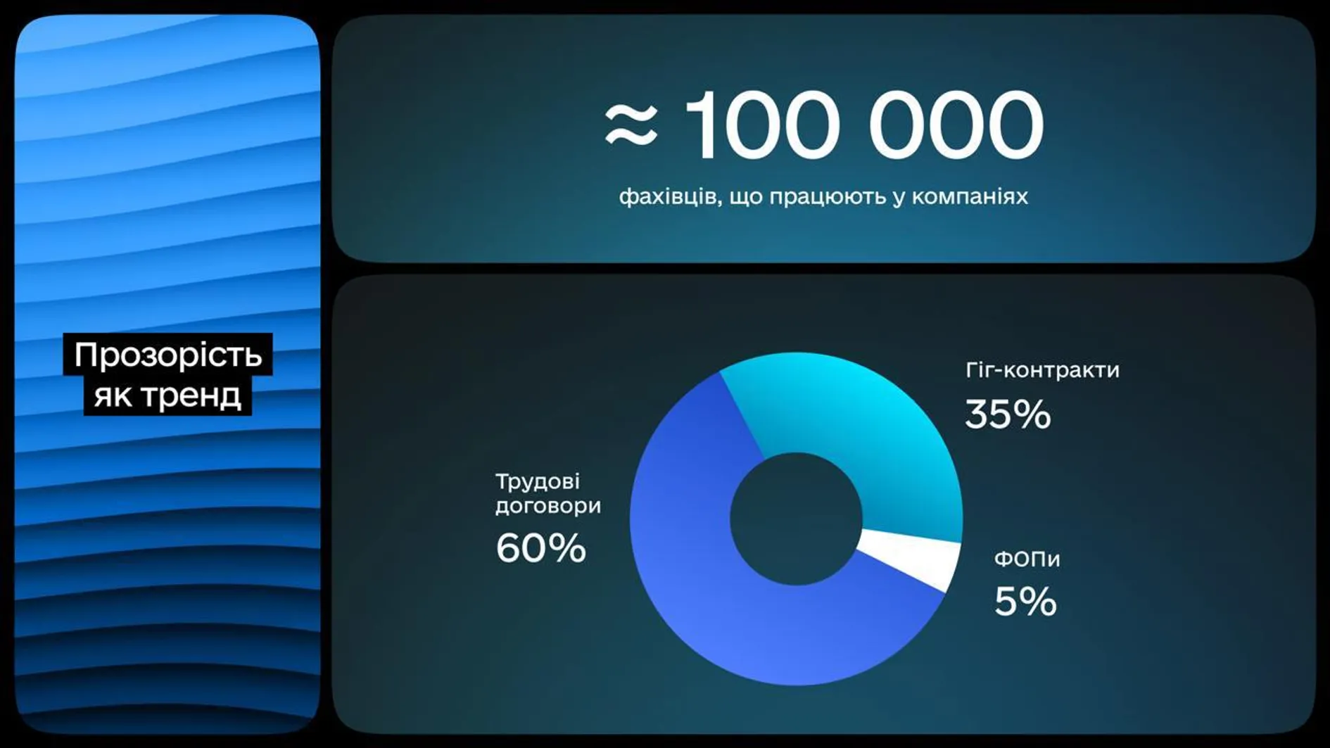 - среди работников резидентов – 60% на трудовых договорах, 35% – на гиг-контрактах, 5% – на ФЛП, что положительно оценивает Федоров.