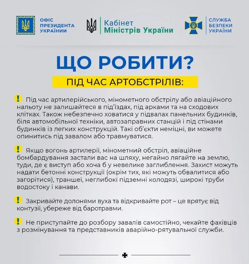 В спецслужбе обнародовали информацию о том, что и в какой последовательности следует делать в случае разных видов обстрела.