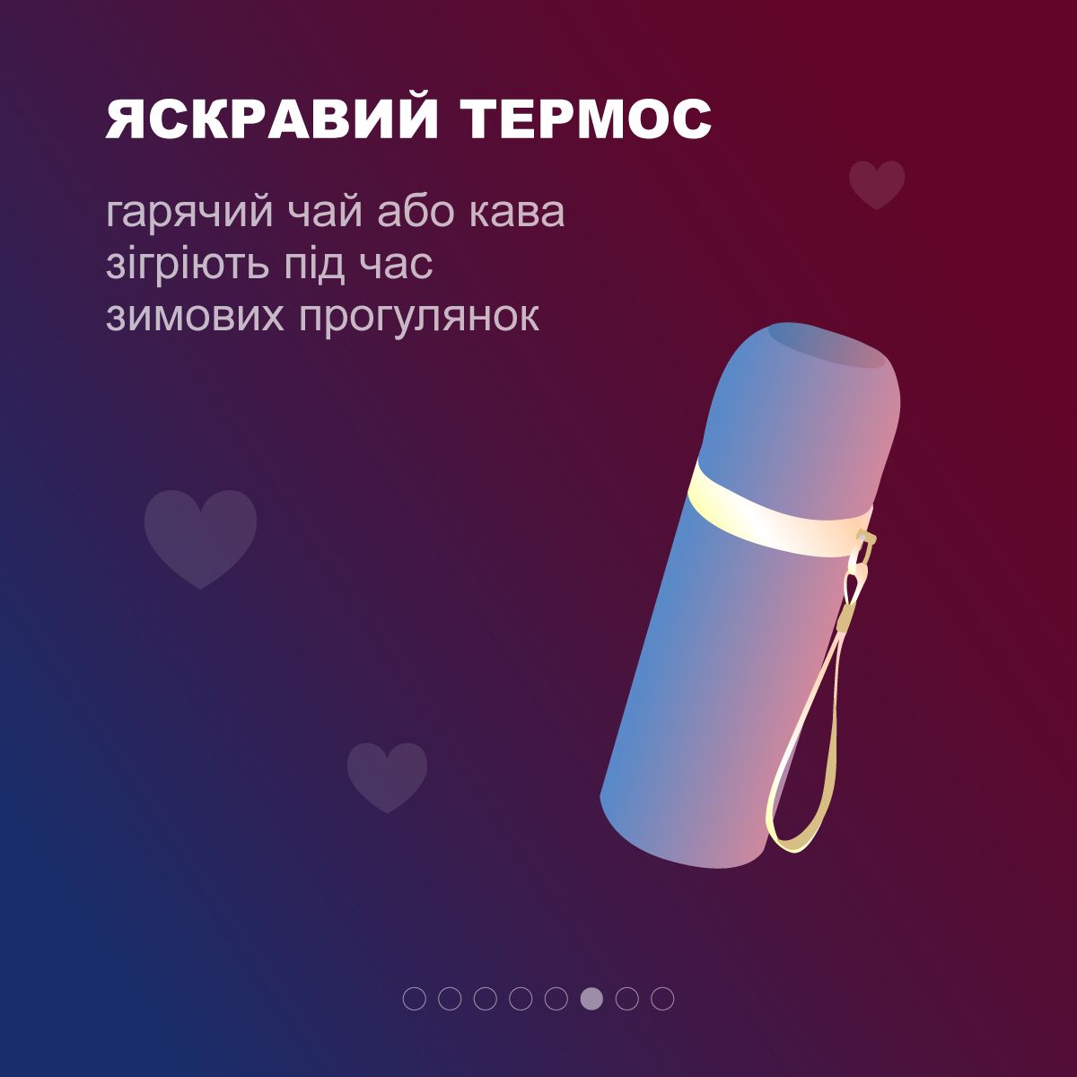 - Яркий термос – горячий чай или кофе согреют во время зимних прогулок.