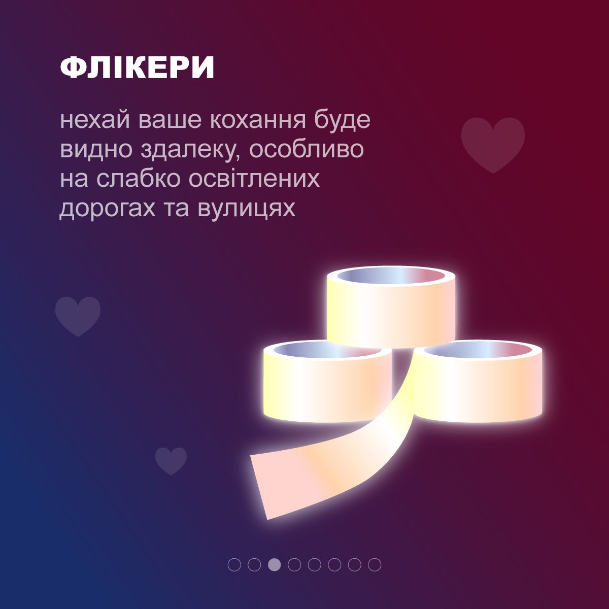 - Фликеры – пусть ваша любовь будет видна издалека, особенно на слабо освещенных дорогах и улицах.