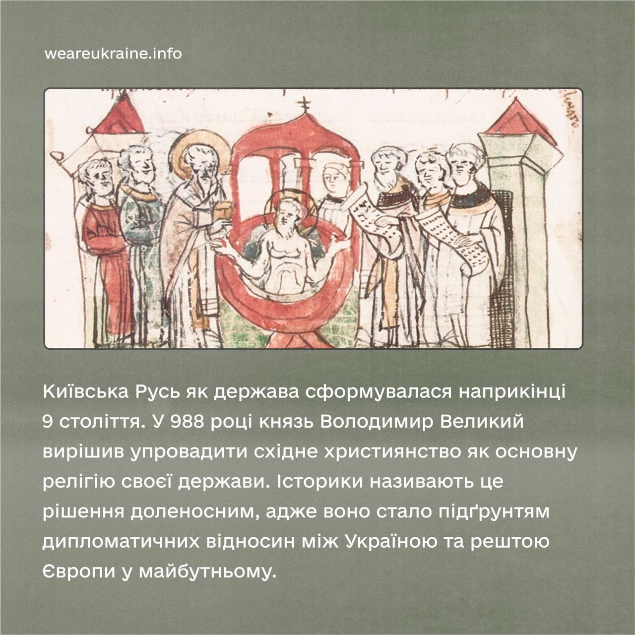 Используя выражение Грушевского, мы подчеркиваем свою связь с людьми, которые жили на наших землях тысячу лет назад. Ведь Русь была именно Киевской: на киевских холмах, согласно легенде, Андрей Первозванный поставил свой крест и в днепровских водах Владимир окрестил русичей. Как бы ни хотели россияне, эти события произошли именно в Украине. У России тогда еще не было государственности, а крупные города, в частности Великий Новгород, также входили в состав Киевской Руси.