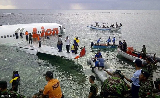 Самолет Boeing 737 900 ER компании "Lion Air" выполнял рейс из Индонезии на Бали. Из-за сильного экваториального ливня и ошибки пилота во время посадки в аэропорту "Нгурах-Рай" воздушное судно пролетело мимо взлетно-посадочной полосы и упало на мели.
