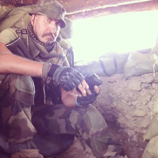 В Париже никто особо не догадывается, что он воюет на самых нулях. Своим коллегам и друзьям он рассказывает, что он на подхвате – чистит картошку, моет казармы, сидит на базе. Ложь во благо, из тех, что мы рассказываем родным, чтобы они не волновались лишний раз. Картошку он, может, и чистит, но чаще всего чистит все-таки свой автомат. Он не из тех знаменитостей, которые приезжают пофотографироваться на блокпостах. Он полноценная боевая единица, солдат, боец, правосек. К нему нет никакого "поблажливого" отношения, да и сам он не задирает нос. Мне сейчас даже сложно представить его во фраке и на сцене, настолько органично он смотрится в окопе с сигаретой в зубах.
