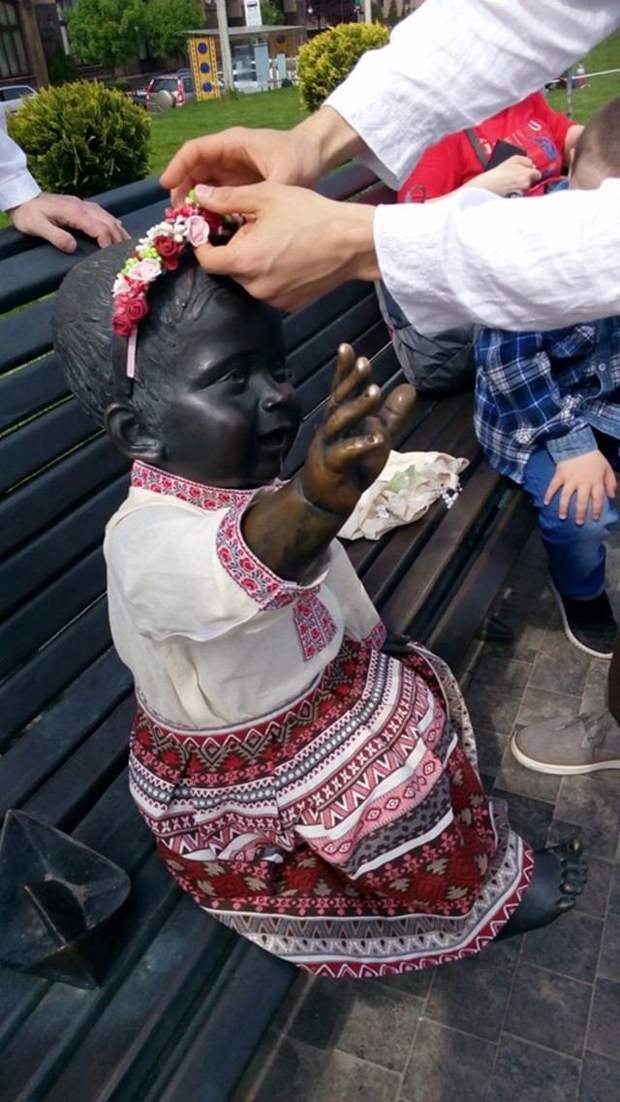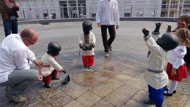 Памятники маленьким основателям Киева одели в вышиванки: смотрите фото