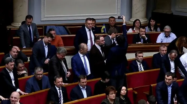 Кроме того, на видео видно, как нардеп Сергей Лещенко снимает на видео момент голосования депутатов из БПП и ему препятствует коллега по фракции Глеб Загорий.