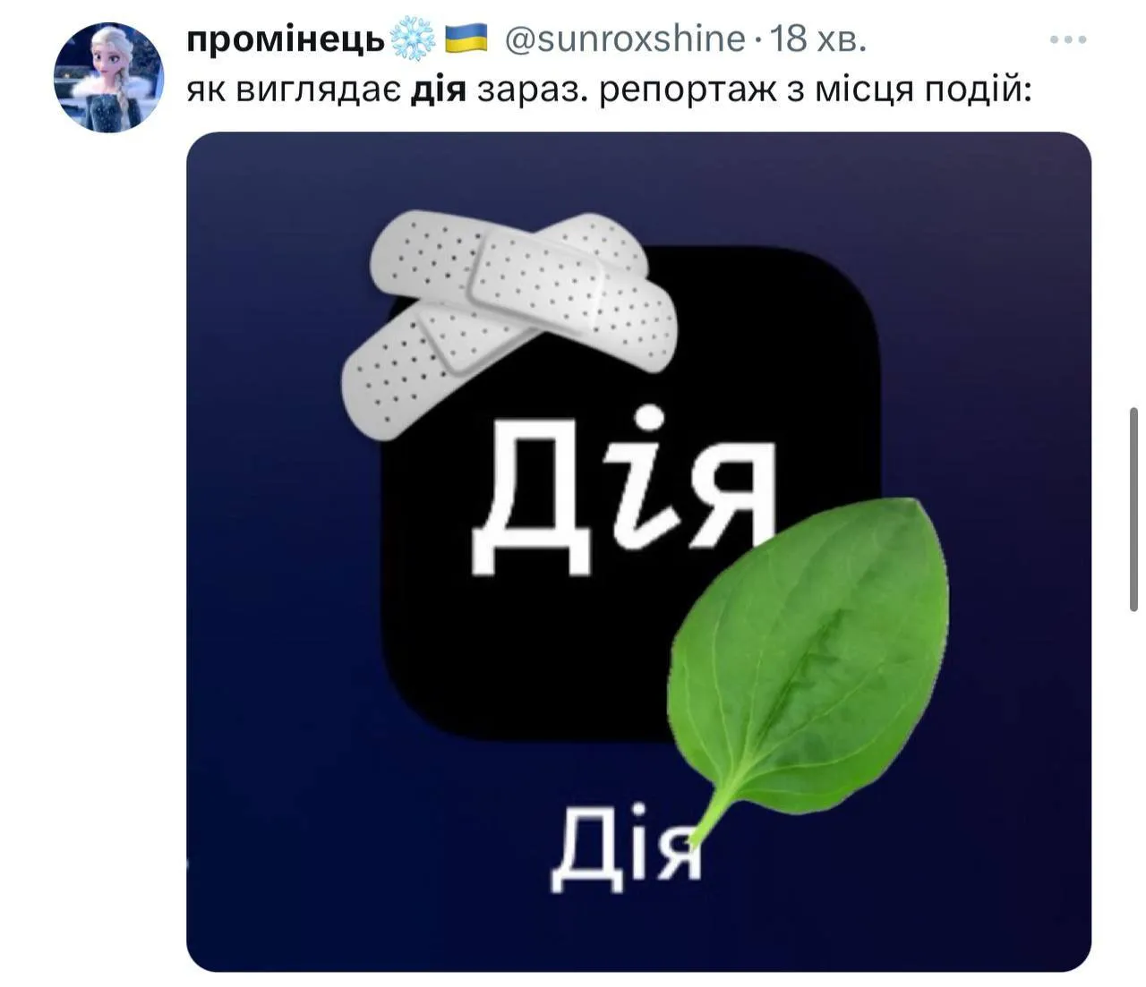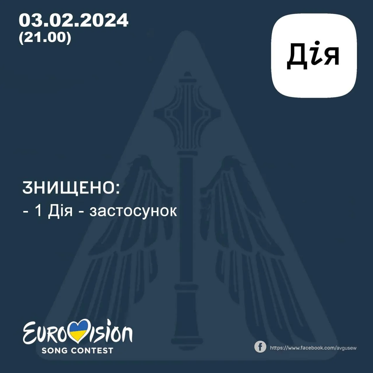 Не обошлось без шуточной статистики о сбитых целях. Украинцы использовали шаблон Воздушных сил, чтобы продемонстрировать, что 3 февраля "сбили" приложение Дия. Вот поэтому оно и не работало.