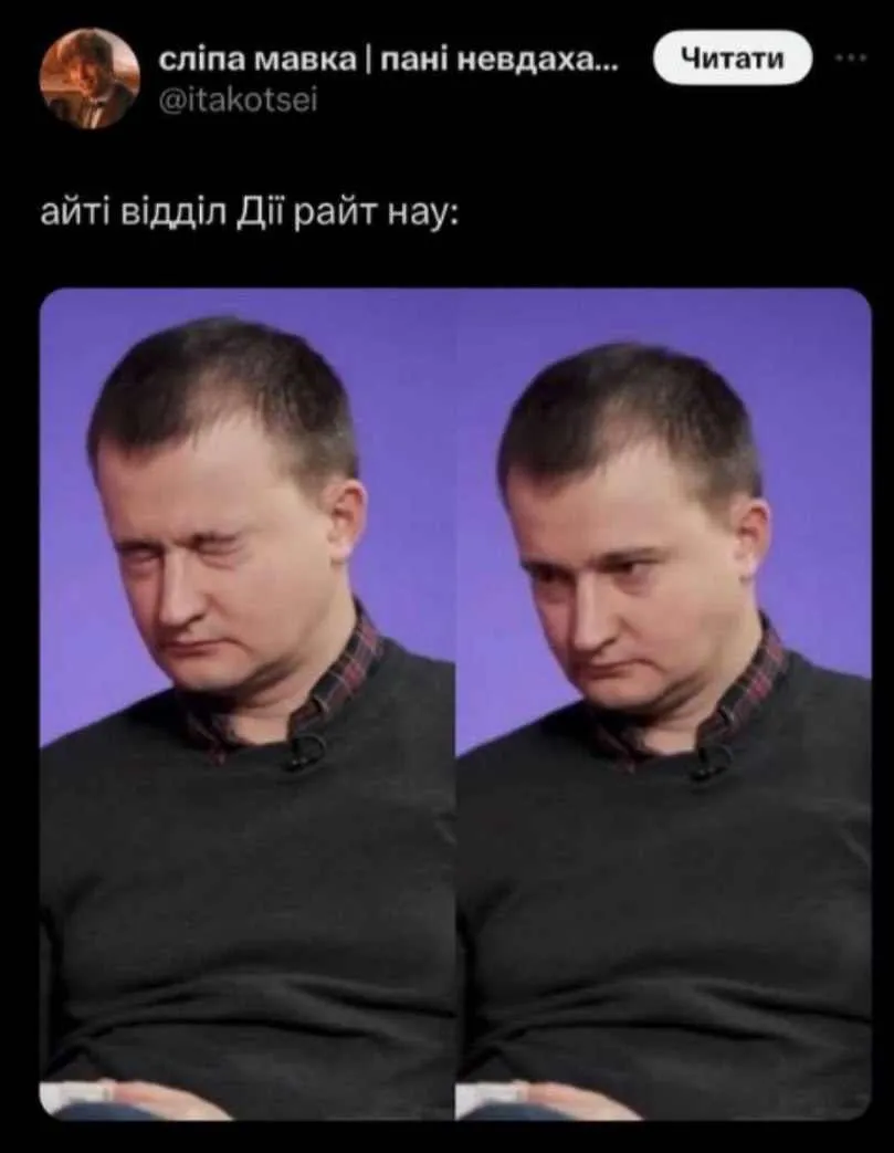 Пользователи сети не могли обойти вниманием работу IT-отдела Дии. Мем с Тарасом Чмутом – прекрасно это иллюстрирует.