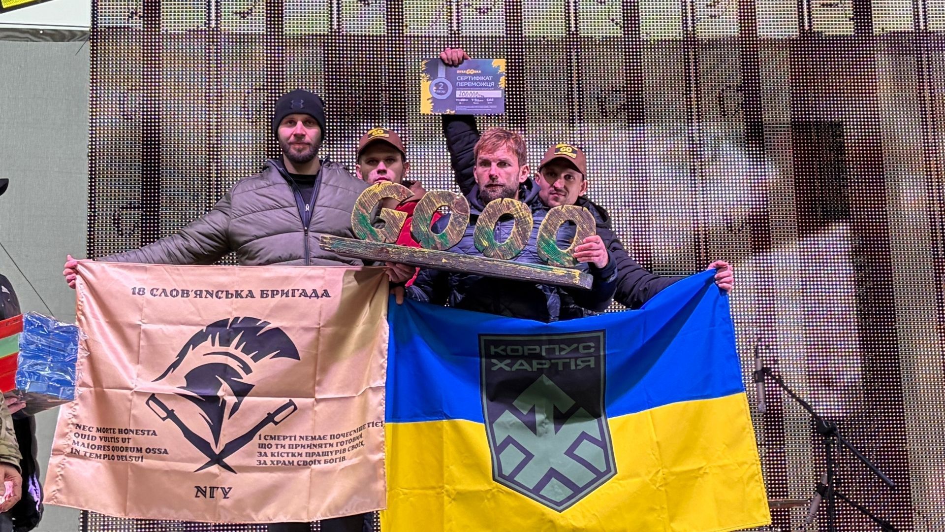 Вторыми препятствия преодолели бойцы корпуса Национальной гвардии "Хартия" – и за победу они получили чек на 200 тысяч гривен.