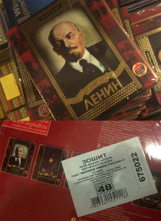 "Школьные тетради для украинских детей от украинского производителя... "Великими именами России"", - говорится в сообщении.