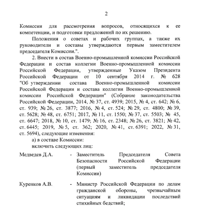 Теперь бывший лидер России станет первым заместителем военно-промышленной комиссии (ВПК), главой которой является сам Путин.