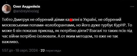 Дмитрук опубликовал сообщение с критикой Вооруженных Сил Украины на своем телеграм-канале. Как реагируют украинцы на пророссийские сообщения – передает 24 Канал.