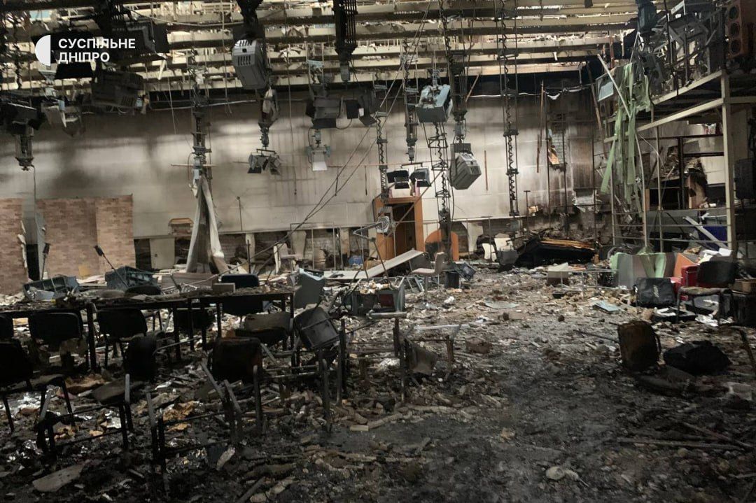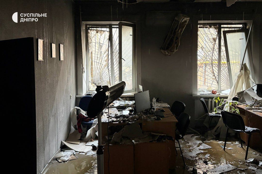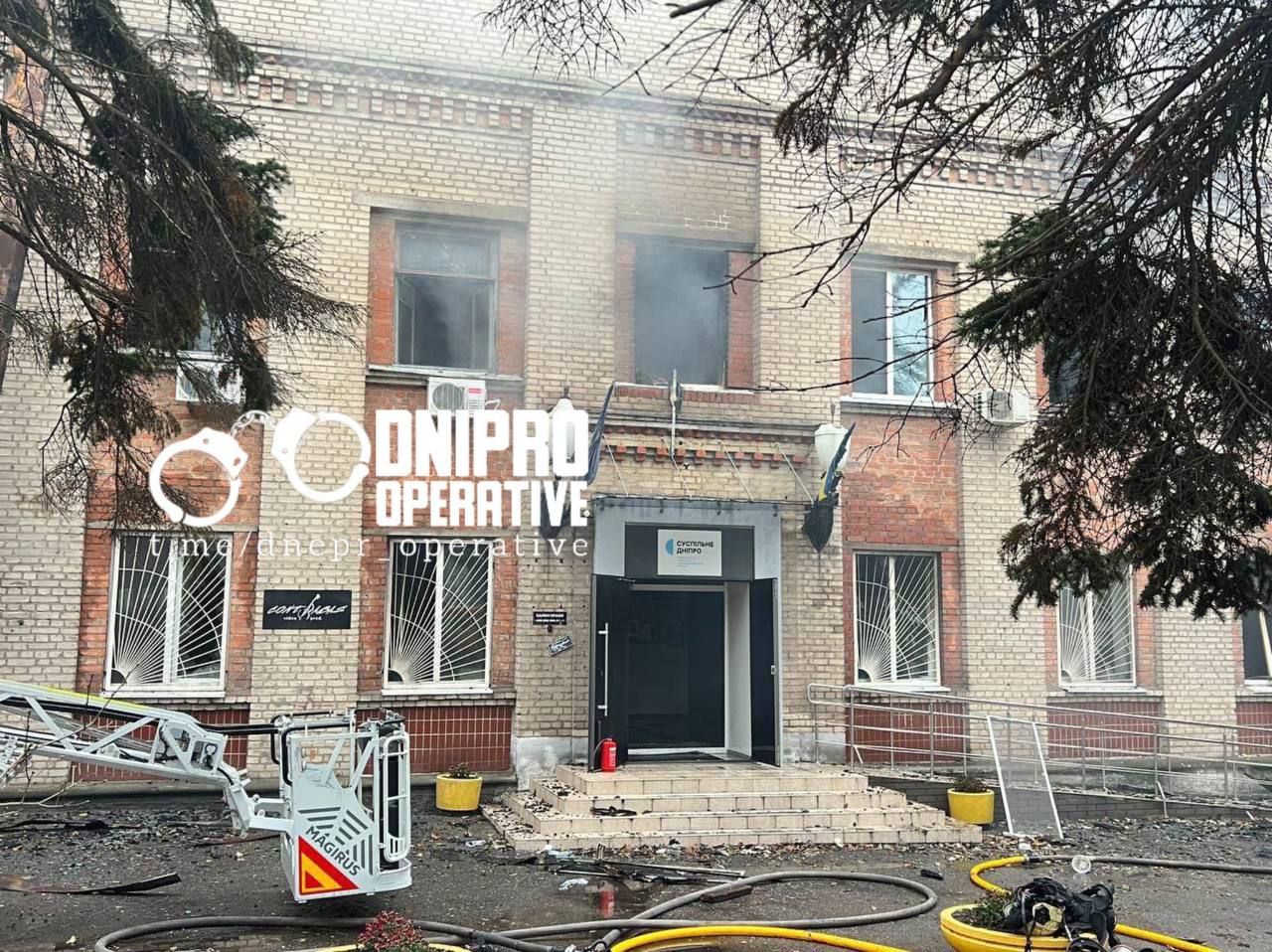 Здание офиса "Суспильное Днепр" и "Украинского радио Днепра" подверглось значительным разрушениям. Возник пожар, повылетали окна и двери, повреждены перекрытия и крыша.