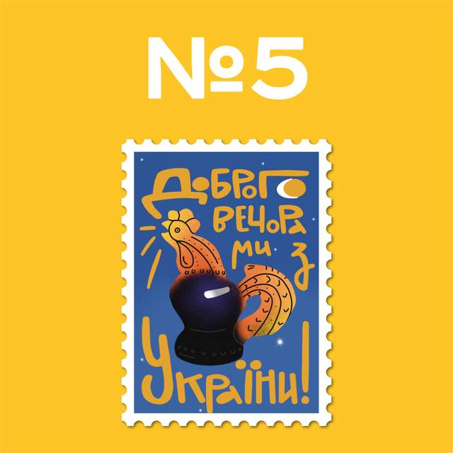 После огромной популярности марки "русский военный корабль, иди... !" (и даже продолжения серии под названием "русский военный корабль... все"), Укрпочта решила выпустить новую почтовую марку "Доброго вечора, ми з України!". Компания получила 1 500 эскизов работ, из которых выбрала пять. Именно из них и было предложено выбрать лучшую.