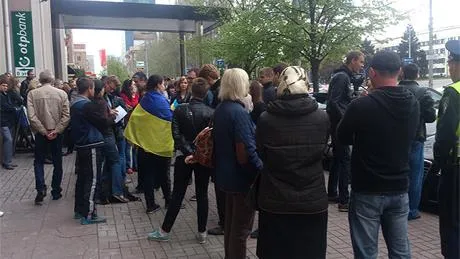 Как известно, ранее в воскресенье вооруженные люди в балаклавах с нашивками "Донецкая Народная Республика" требовали от владельца лизинг-центра на площади Ленина лидера Украинской народной партии Александра Клименко снять с башни здания украинский флаг.
