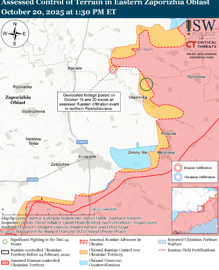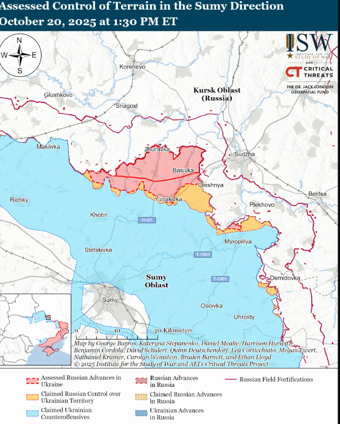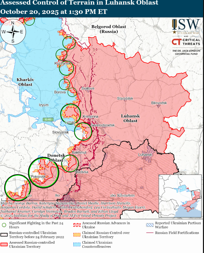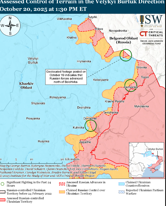 Тем временем снимки за 20 октября показывают, что враг недавно продвинулся на север от Бологовки (на север от Большого Бурлука).