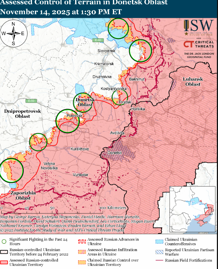 Аналитики отмечают, что российское командование сейчас сосредоточено именно на взятии Покровска, а не на замыкании более широкого "котла" Покровск– Мирноград.