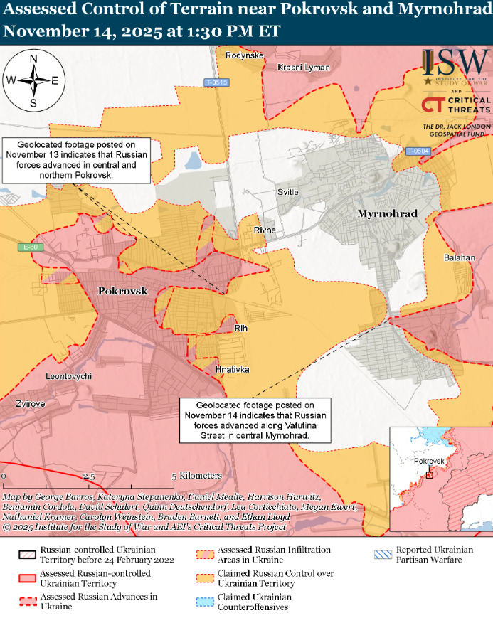 Аналитики отмечают, что российское командование сейчас сосредоточено именно на взятии Покровска, а не на замыкании более широкого "котла" Покровск– Мирноград.
