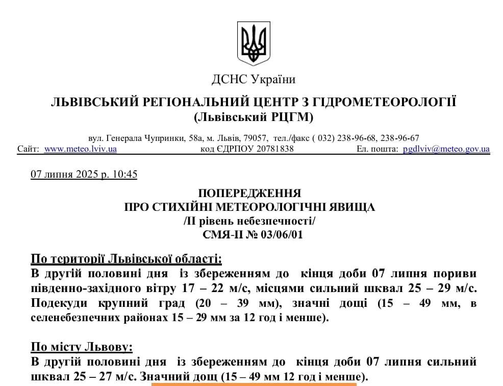 Предупреждение о непогоде во Львове и области / Оповещение ЦЗ