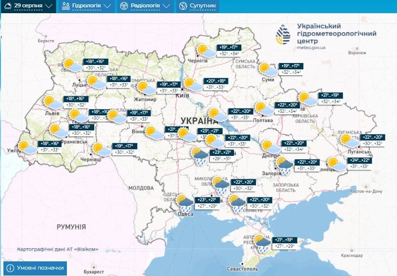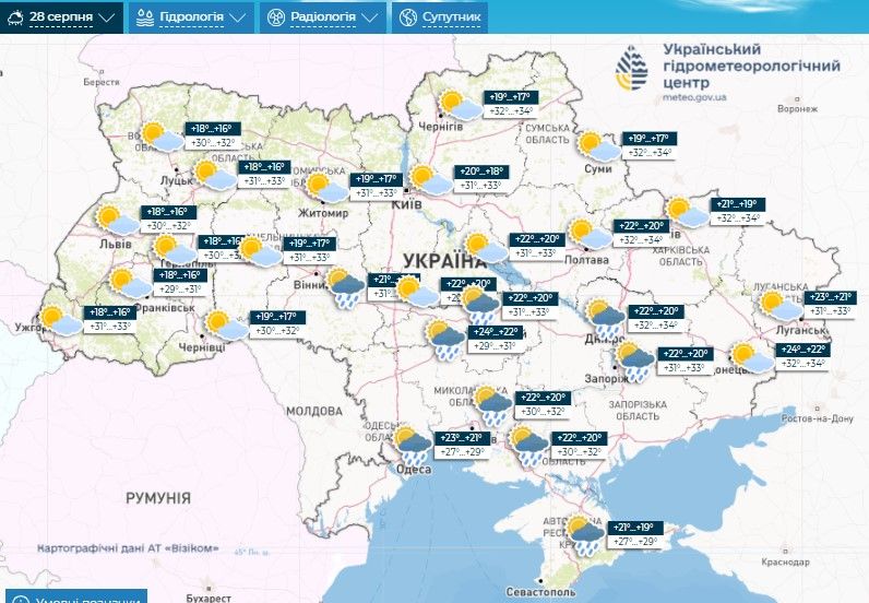Прогноз погоды на 27 – 29 августа / Скриншот с Укргидрометцентра