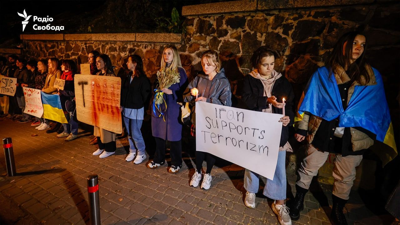 Участники акции обвиняют Иран в поддержке терроризма и убийстве украинцев. Сообщается, что в акции протеста приняло участие несколько десятков человек.