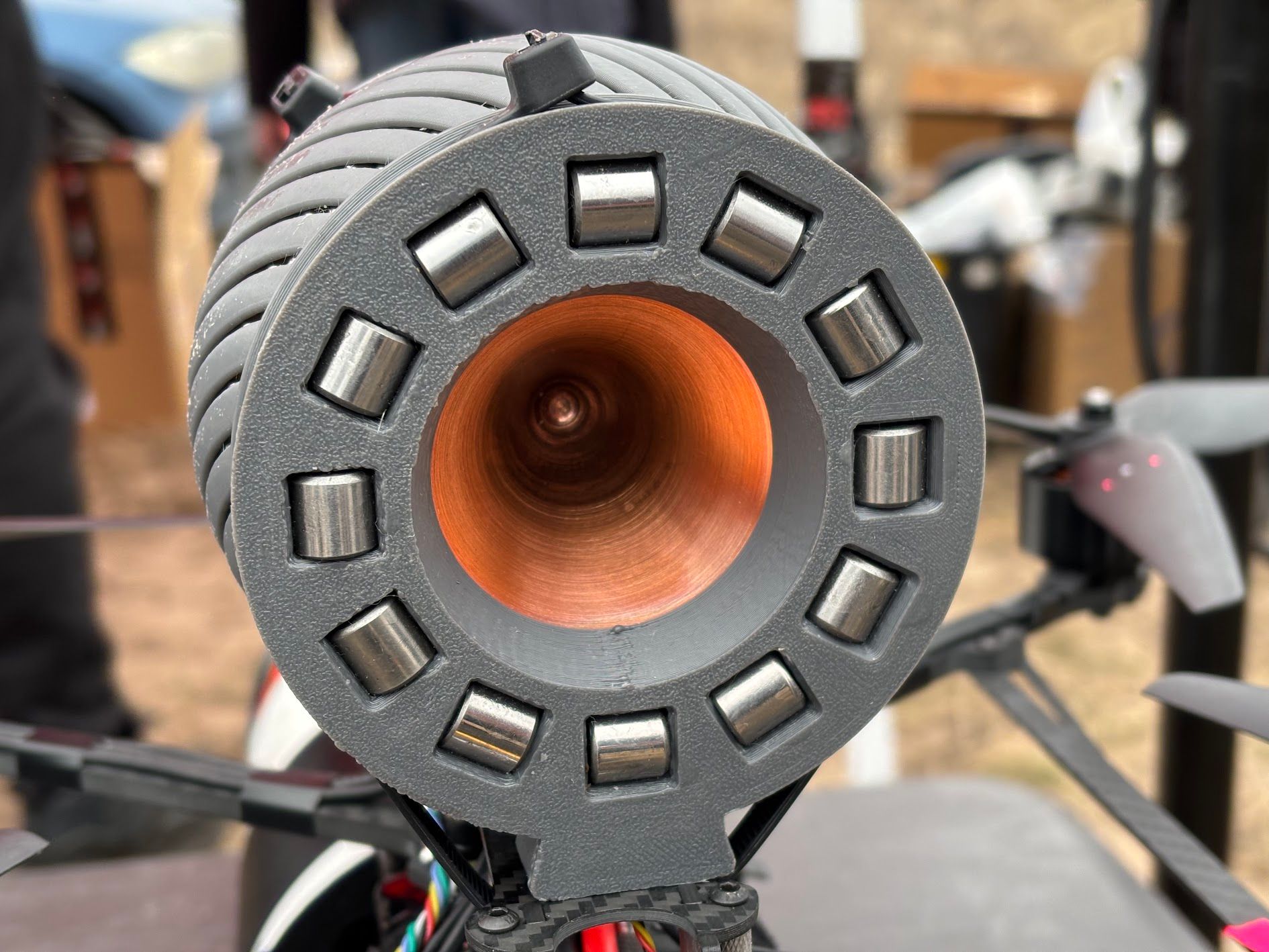 Компания также усовершенствовала систему крепления катушек. Жулинский отметил, что новый форм-фактор дронов сделан так, чтобы сопла катушки не мешали пропеллерам, что улучшает маневренность. Благодаря этому дрон может свободно менять траекторию, заходить на цель и облетать ее без риска задеть катушку.