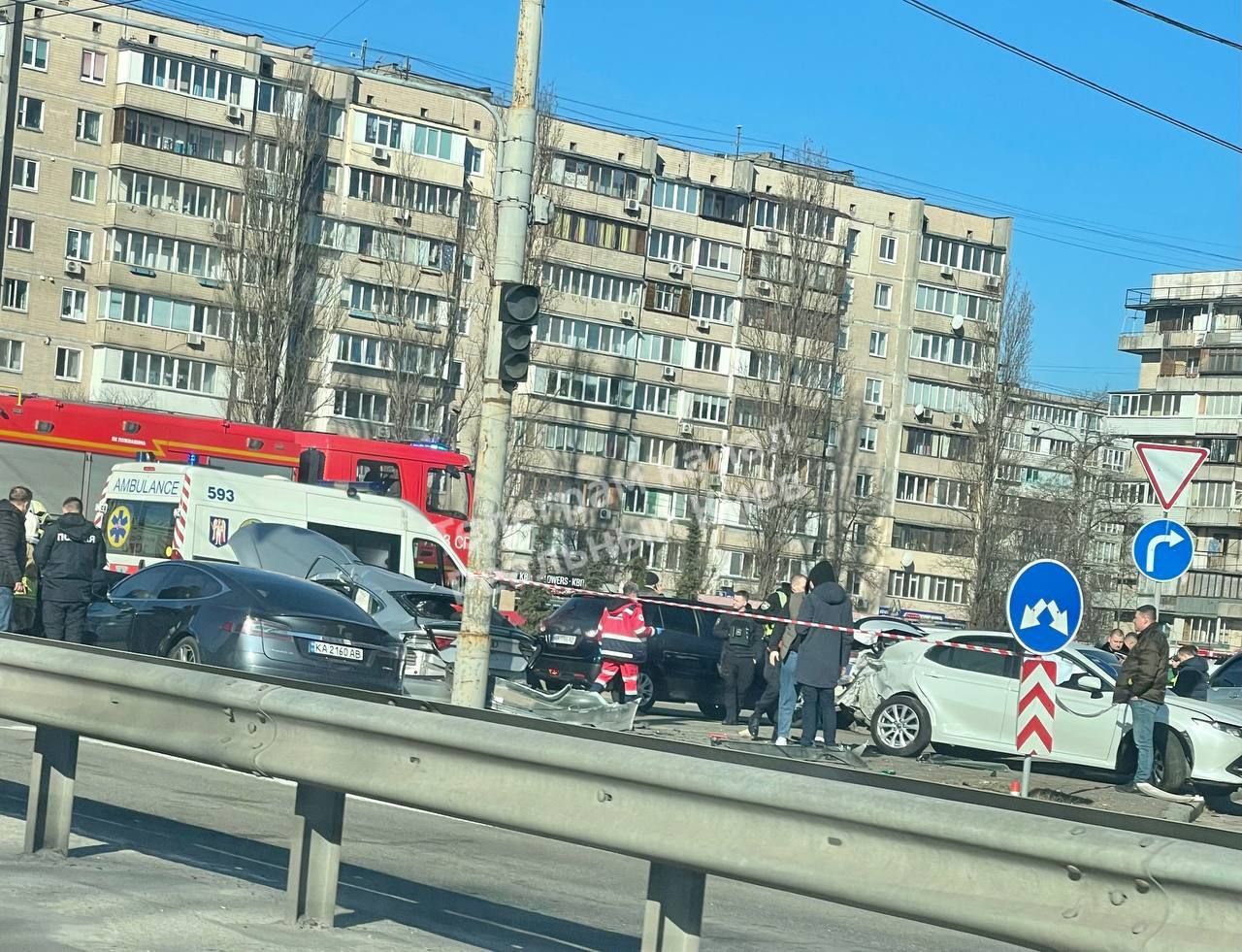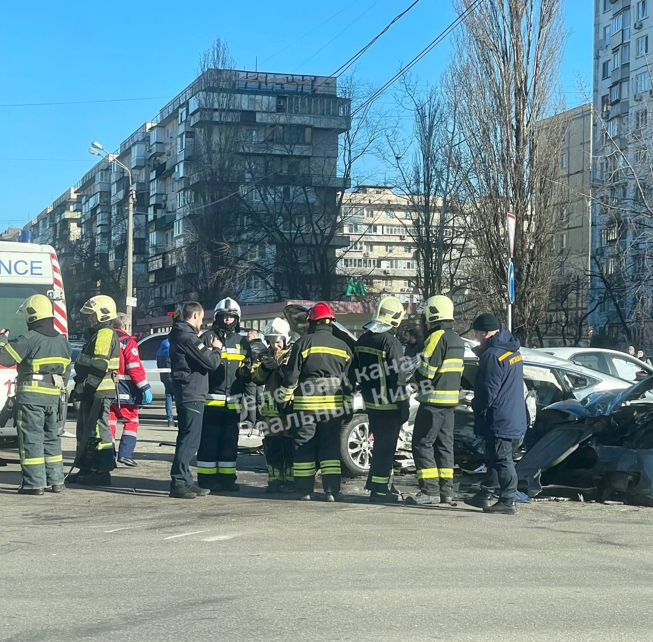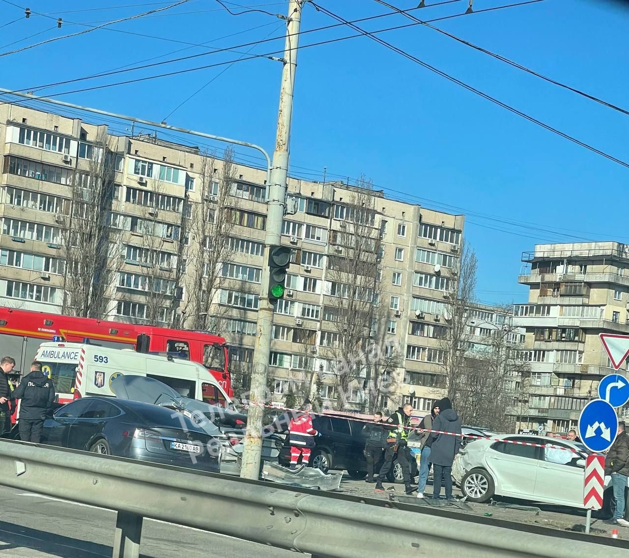 Местные телеграм-каналы пишут, что вероятным виновником ДТП на Оболони является водитель "Теслы", который проехал на красный свет и протаранил два автомобиля. Предварительно, 2 человека пострадали.