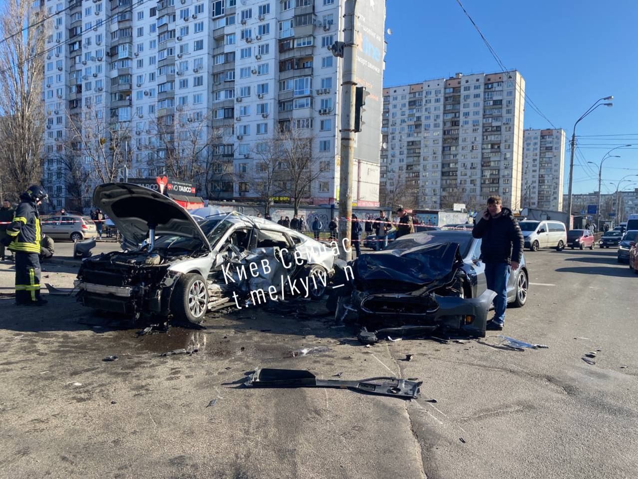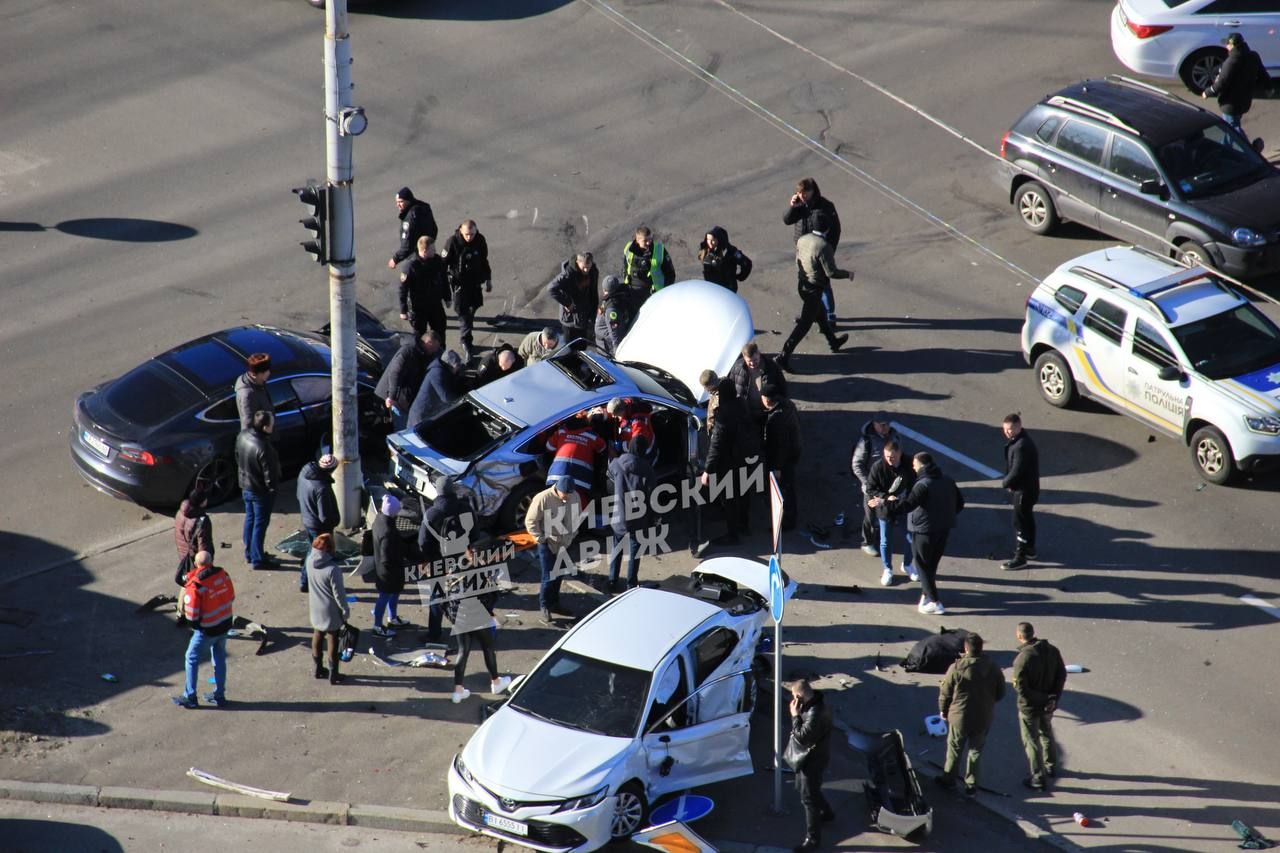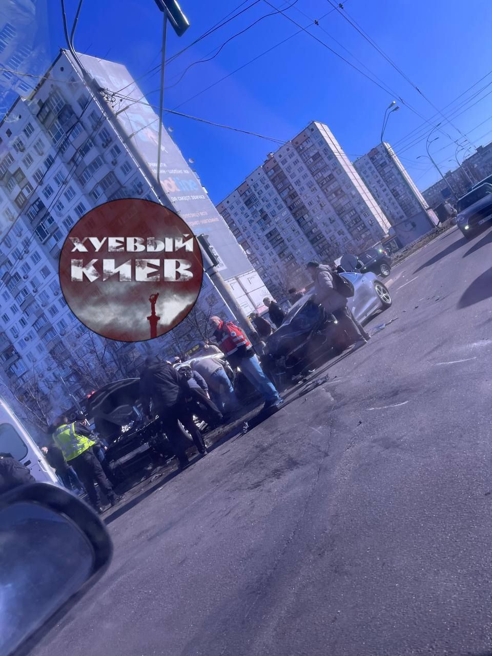 Местные телеграм-каналы пишут, что вероятным виновником ДТП на Оболони является водитель "Теслы", который проехал на красный свет и протаранил два автомобиля. Предварительно, 2 человека пострадали.