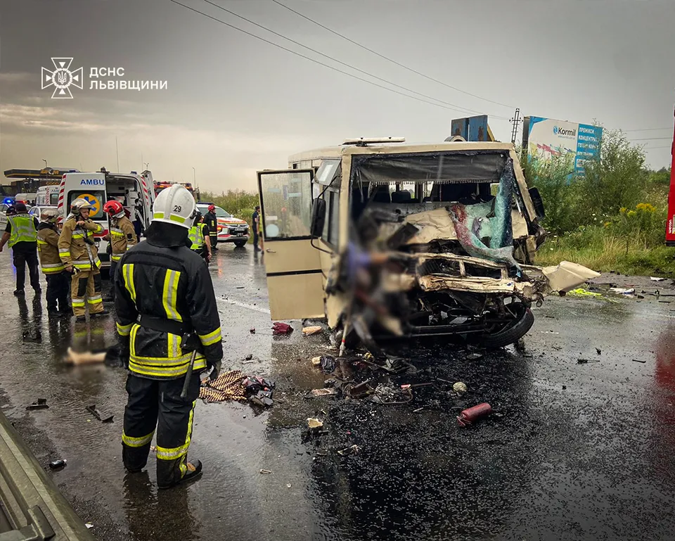 ДТП произошло сегодня, 17 июля, на дороге Львов – Бобрка – Рогатин в селе Давыдов Львовской области. Погибли водитель автоцистерны и трое пассажиров маршрутки.