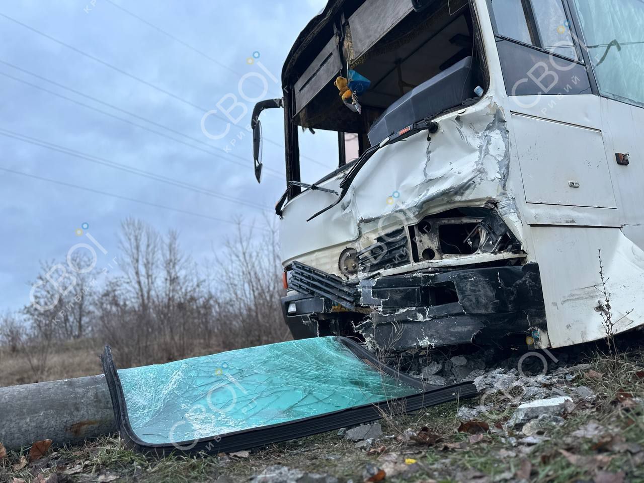 Отмечается, что водитель Mitsubishi не справился с управлением, выехал на встречную полосу и влетел под автобус. Тот в свою очередь врезался в столб и завалил его.