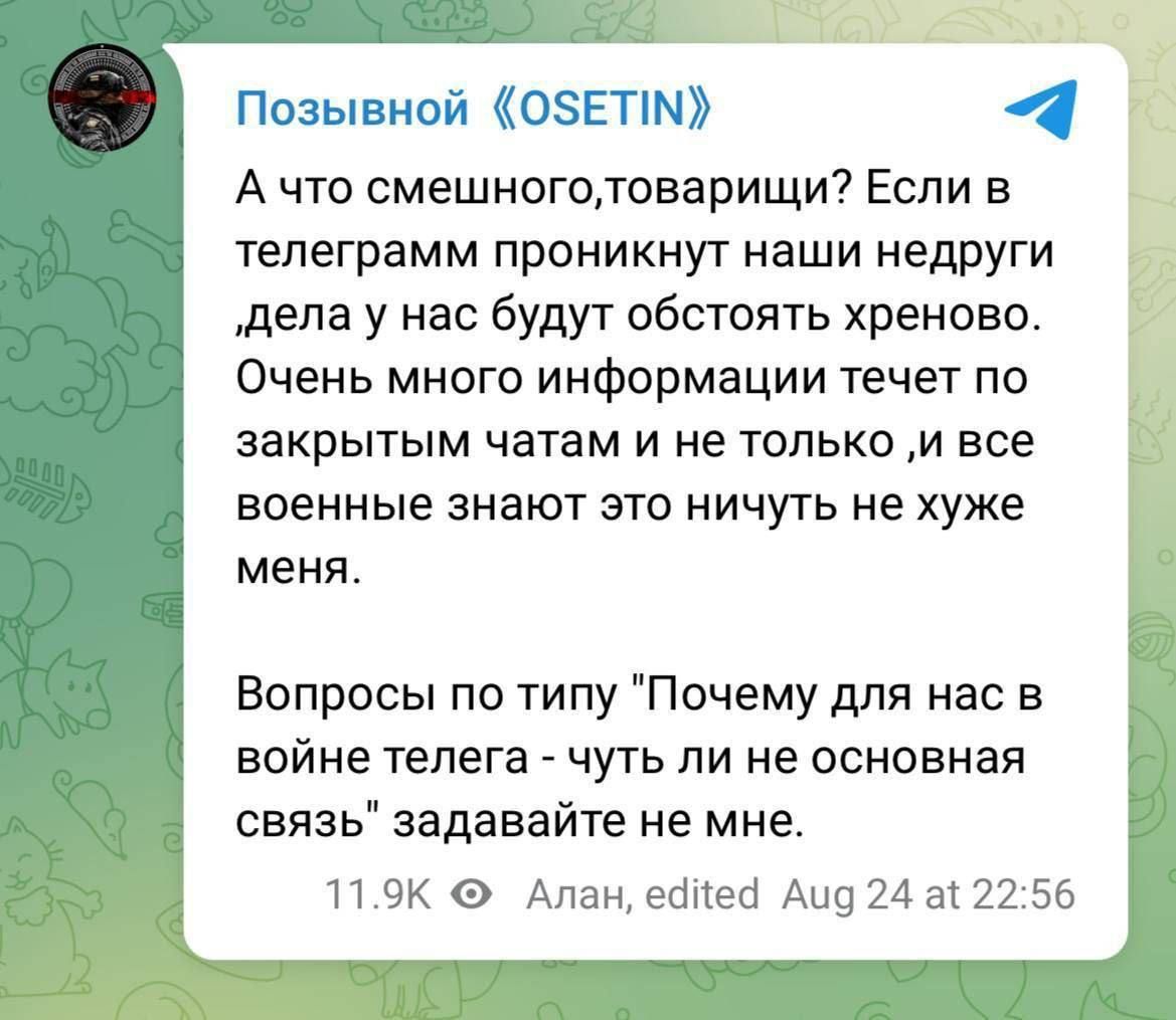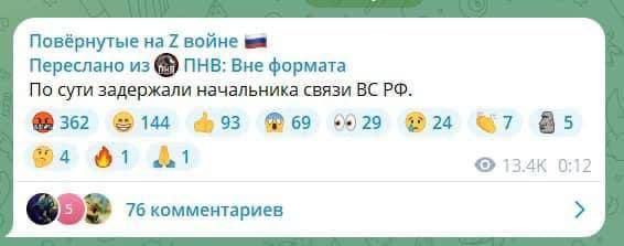 Z-паблики тем временем жалуются, что "весь наш фронт держится на Телеграм", поэтому "по сути, задержали начальника связи ВС России".