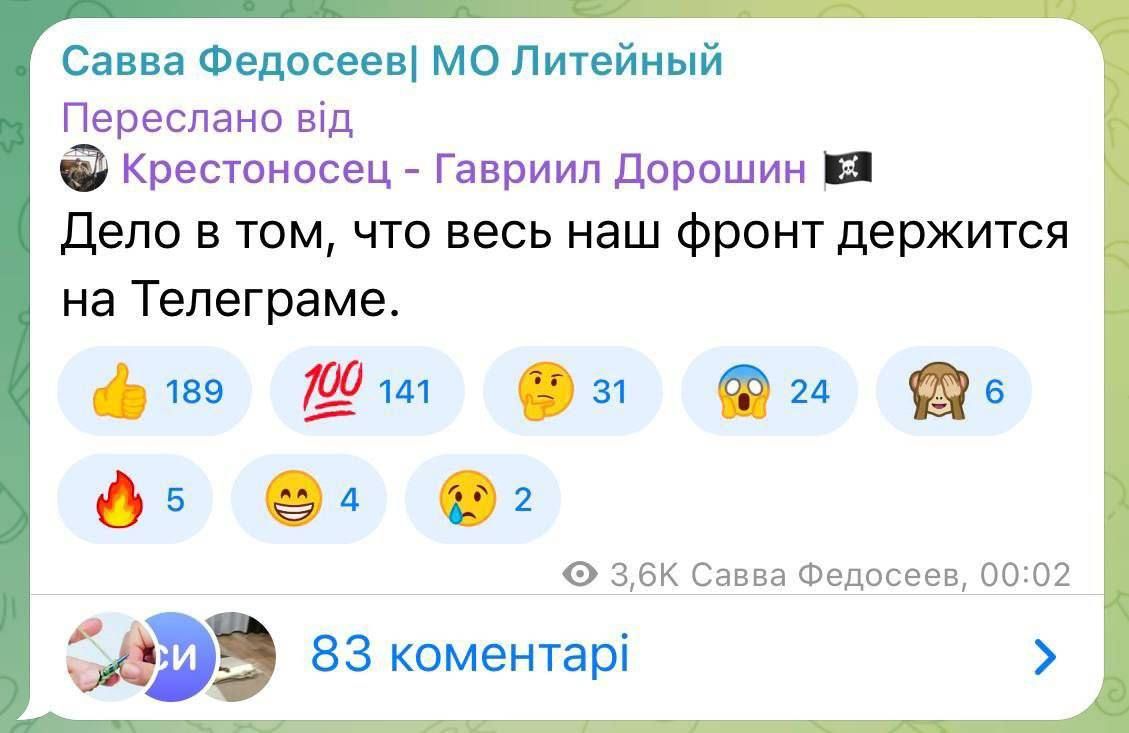 Многие "военкоры" забили тревогу, поскольку Telegram – основной мессенджер, которым пользуются в российской армии, на нем "держится половина связи на так называемой сво". Оккупанты боятся, что после задержания Дурова в приложение "проникнут враги".
