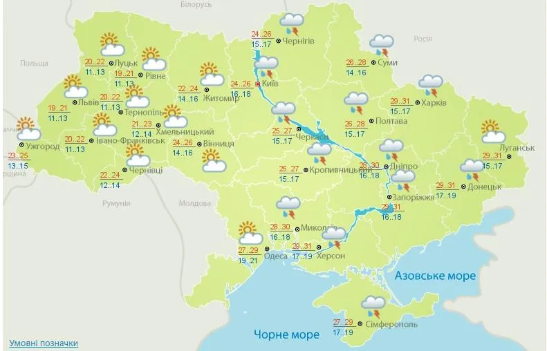 В западных областях завтра столбики термометров не покажут более 24 градусов тепла. В северных областях, Винницкой области, в Кропивницком с районами и Черкасской области ожидается в течение дня до 28 градусов тепла.